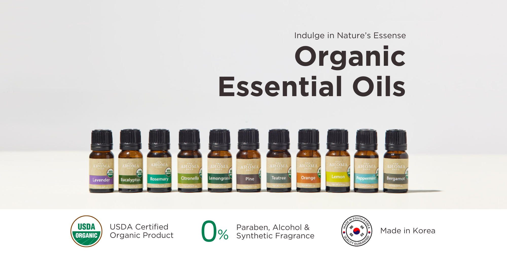 Our Organic Essential Oils are carefully sourced to nourish your skin and uplift your spirits through the benefits of aromatherapy. Certified by USDA Organic, Korea MDFS, Vegan Certified, and Germany Dermatest, they ensure purity, safety, and ethical production, providing you with the highest quality oils for body and mind.